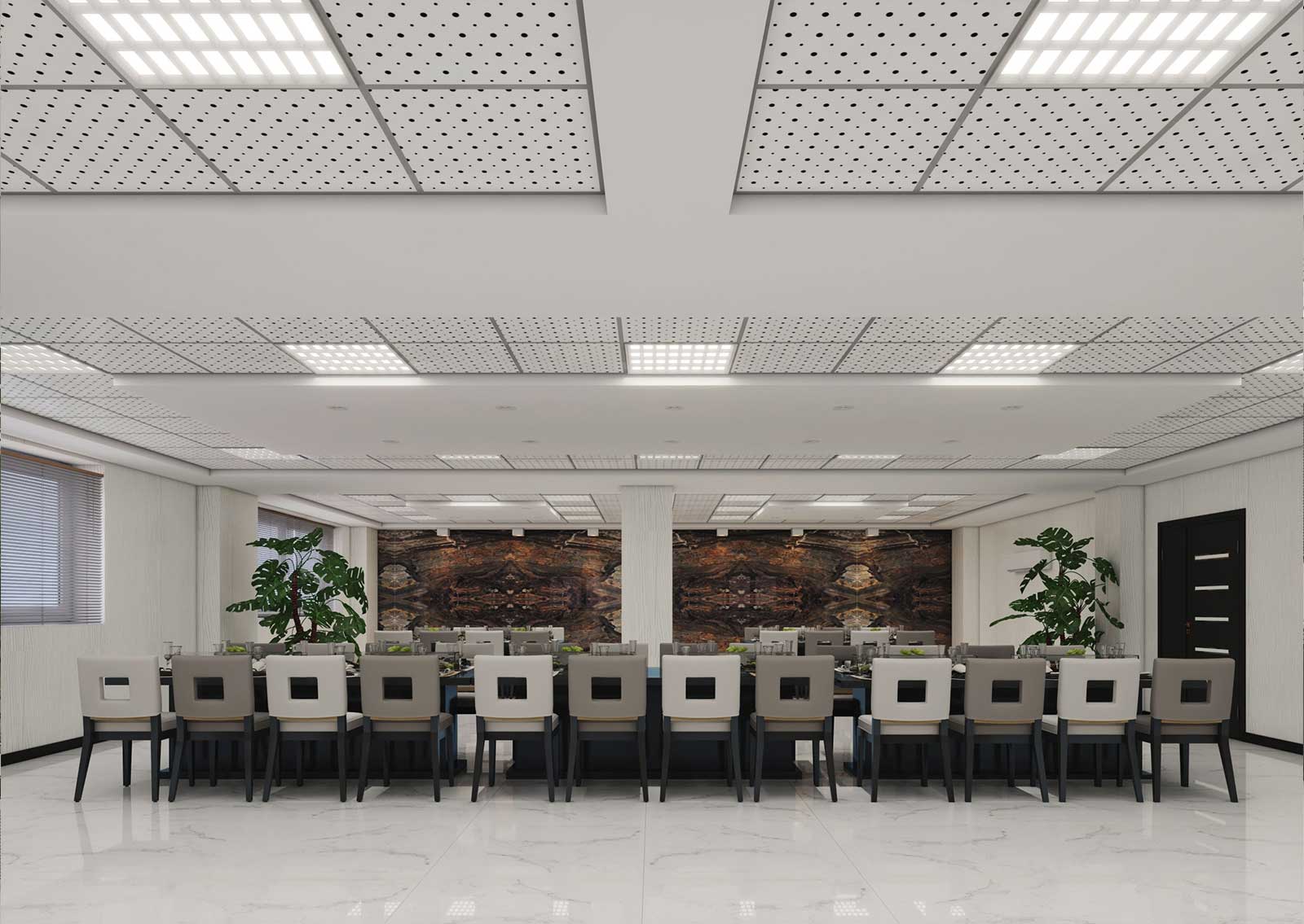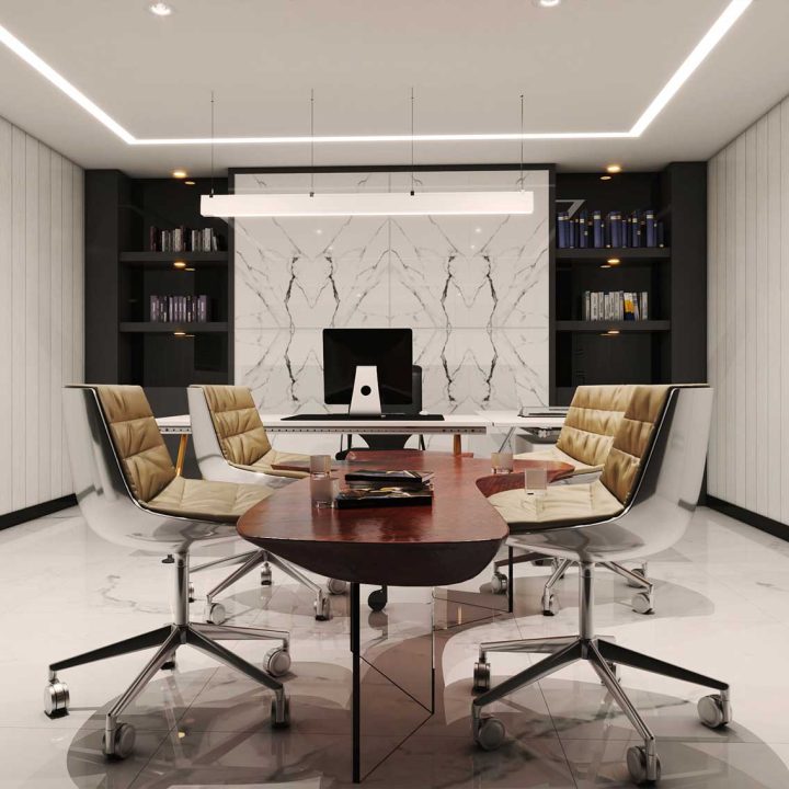ترکیب سادگی در طراحی با تجهیزات مدرن، نه تنها بهرهوری و تمرکز را افزایش میدهد، بلکه حس آرامش و نظم را به محیط کار تزریق میکند. این سبک فضایی، انتخابی ایدهآل برای جلسات کاری، خلاقیتهای تیمی و پذیرایی از مشتریان در فضایی حرفهای و خوشایند است.