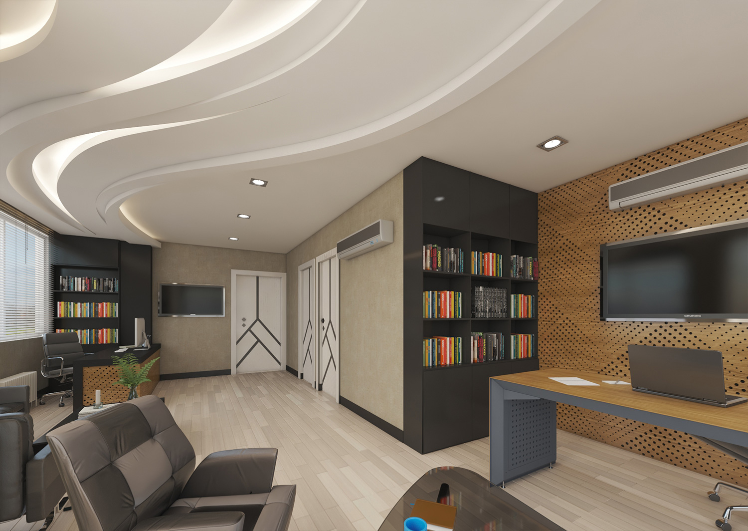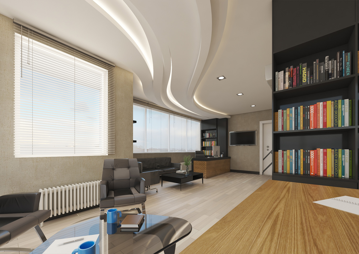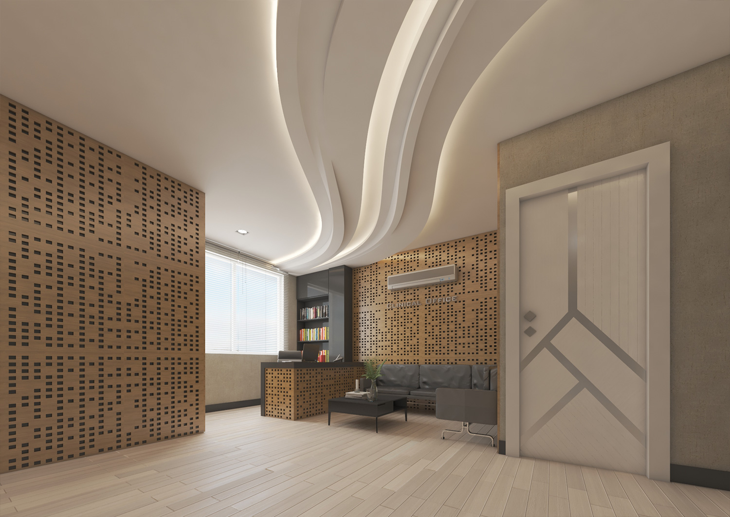نقوش هندسی با خطوط منظم و تکرارشونده، احساس نظم، تمرکز و پویایی را به فضا تزریق میکنند. این در حالی است که اجرای آنها با متریالهای CNC شده، باعث دقت بالا، کیفیت بینقص و امکان شخصیسازی در طراحی شد. دیوارپوشهای برشخورده، پارتیشنهای تزئینی، سقفهای کاذب و حتی مبلمان با طرحهای CNC شده، جلوهای کاملاً منحصربهفرد به دفتر کار بخشیدند.