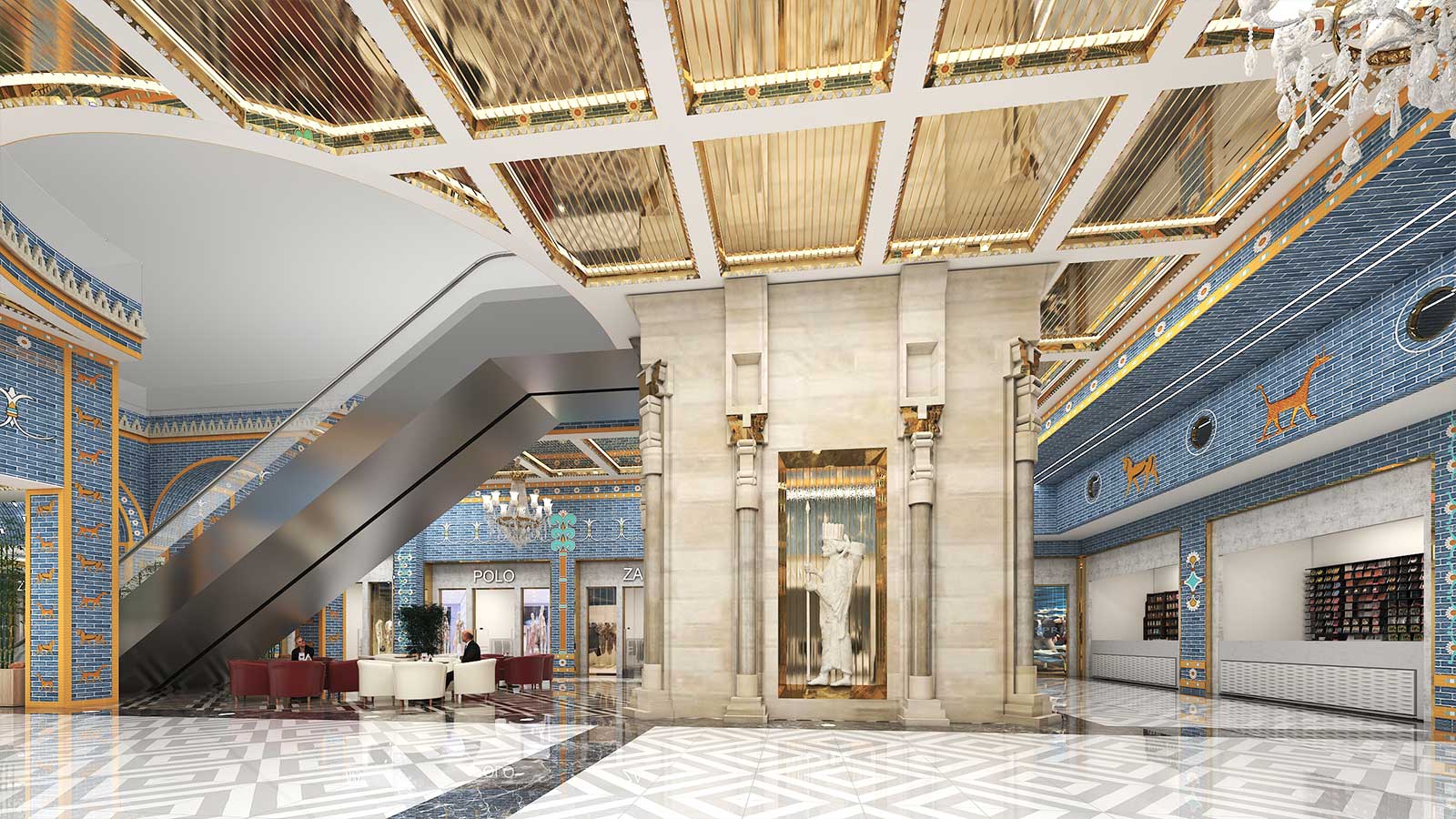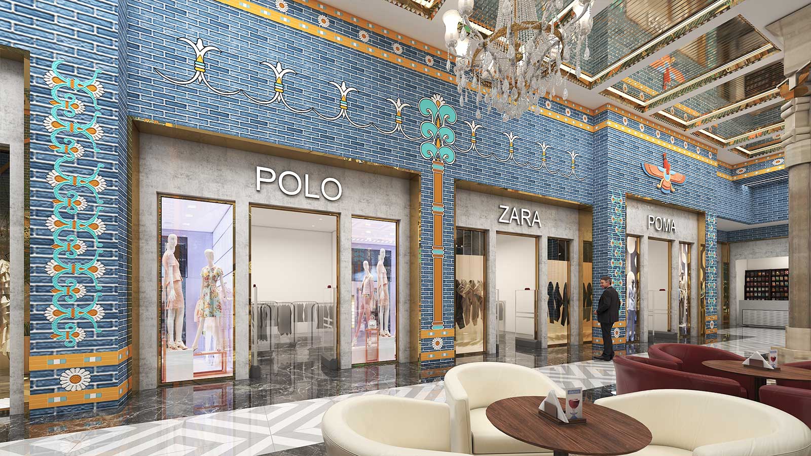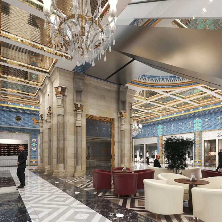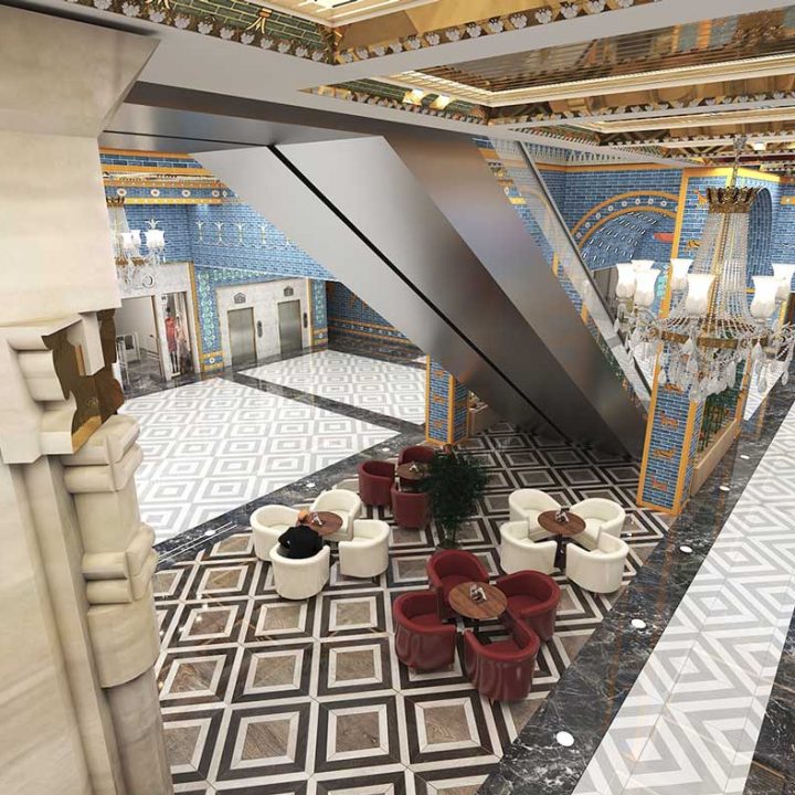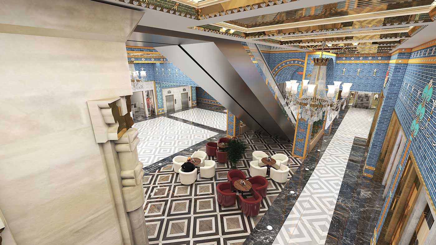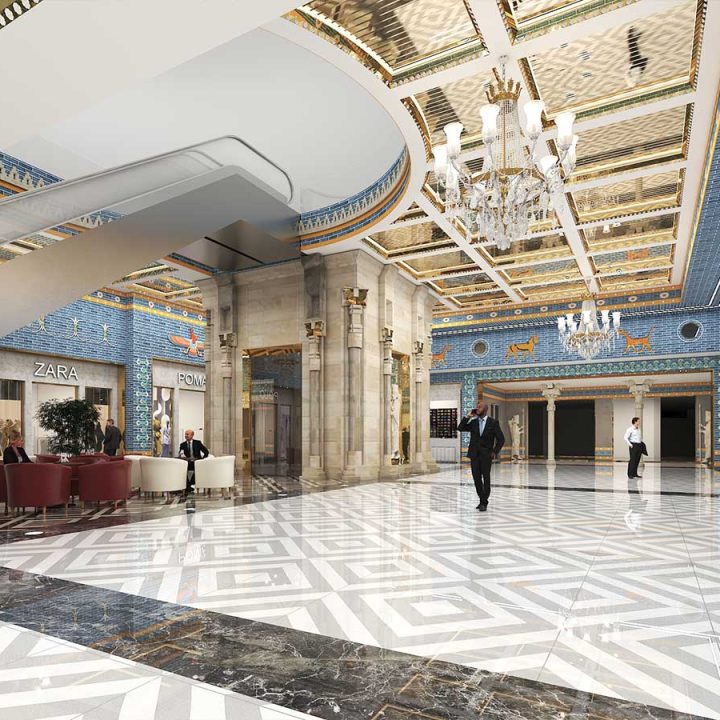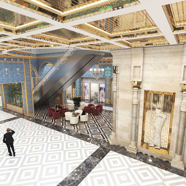 در پروژههای تجاری، سبک هخامنشی میتواند با نورپردازی هنرمندانه، متریالهای سنگی و چوبی، و ترکیب عناصر سنتی با امکانات مدرن، تجربهای منحصربهفرد برای مشتریان ایجاد کند. این طراحی نه تنها بیانگر هویت فرهنگی است، بلکه فضایی متمایز و بهیادماندنی برای بازدیدکنندگان فراهم میآورد.