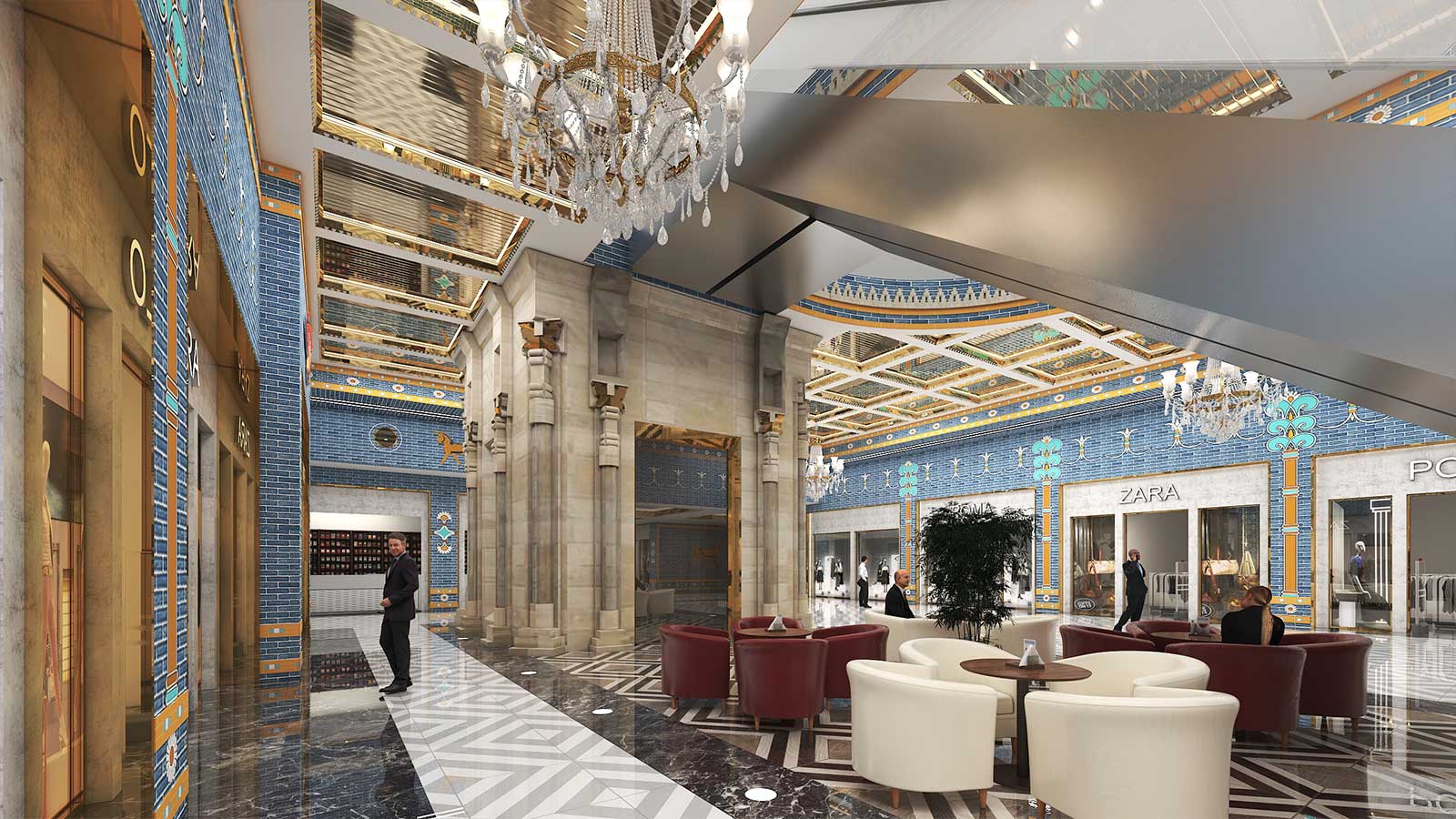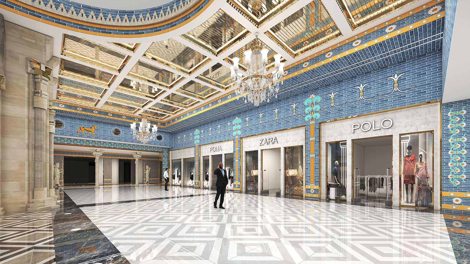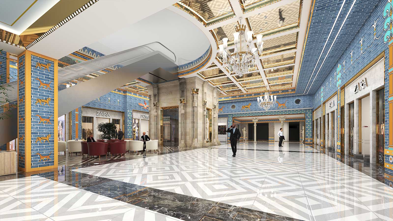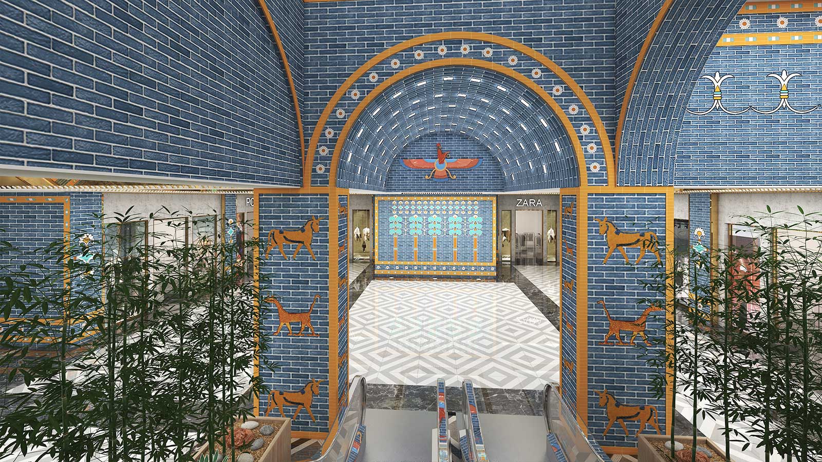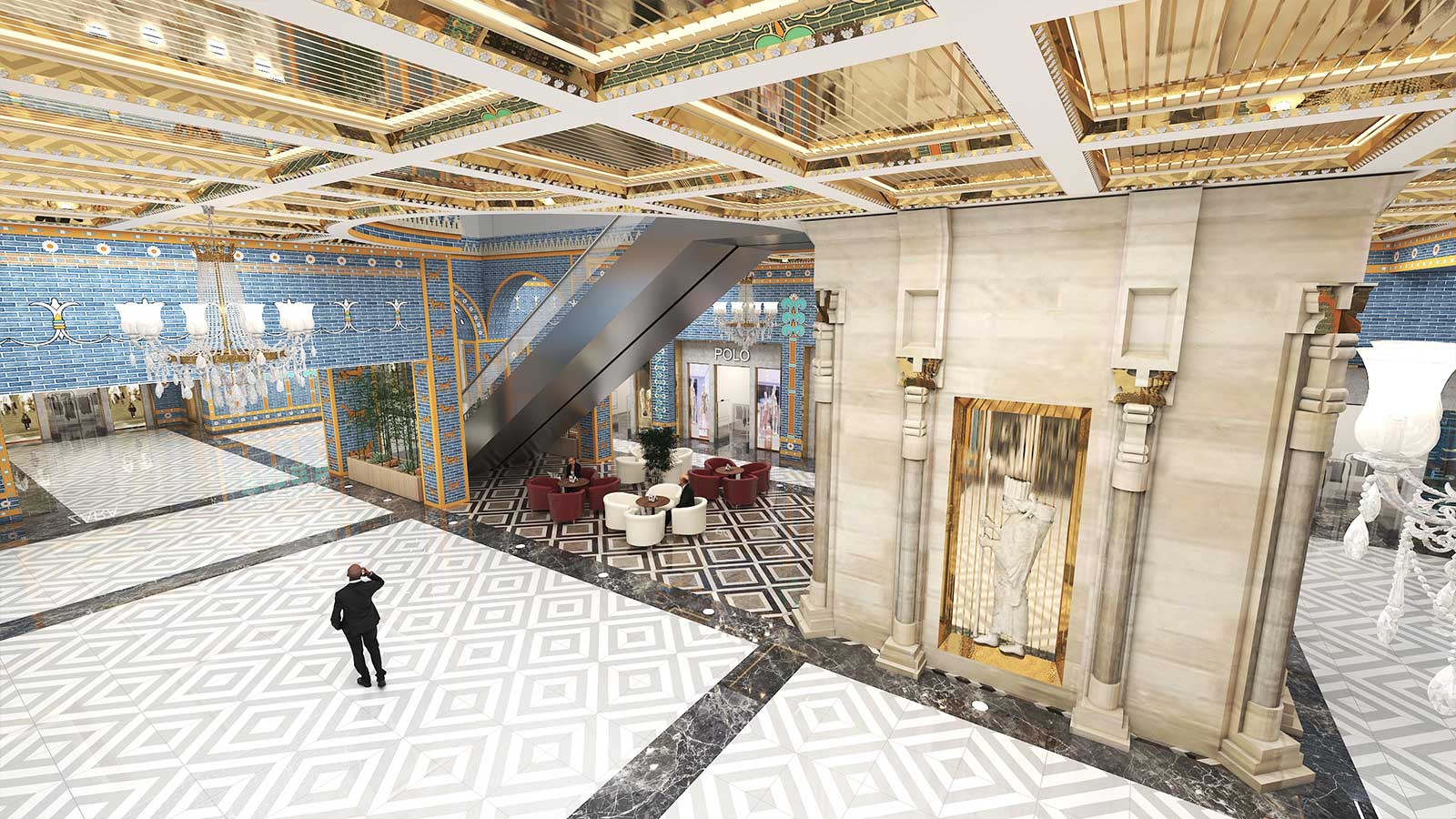در پروژههای تجاری، سبک هخامنشی میتواند با نورپردازی هنرمندانه، متریالهای سنگی و چوبی، و ترکیب عناصر سنتی با امکانات مدرن، تجربهای منحصربهفرد برای مشتریان ایجاد کند. این طراحی نه تنها بیانگر هویت فرهنگی است، بلکه فضایی متمایز و بهیادماندنی برای بازدیدکنندگان فراهم میآورد.